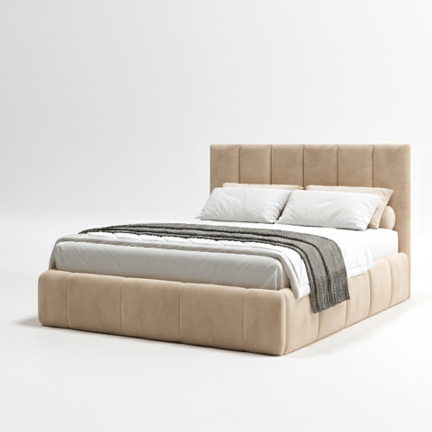 М'яке ліжко Верті Арбор Древ — виразне поєднання сучасної пластики та м'якої геометрії, створене для тих, хто цінує спокійну естетику, тактильний комфорт та атмосферу затишку, втілене українською фабрикою Арбор Древ з увагою до кожної деталі. М'яке ліжко Верті Арбор Древ наповнює простір відчуттям гармонії та усамітнення, м'яко формуючи зону відпочинку, де легко розслабитися та відновити сили. Конструкція виконана з натурального дерева (щит сосни) у поєднанні з МДФ, що забезпечує надійність та стабільність на довгі роки. Основа та узголів'я м'яко обтягнуті шарами поролону та флізеліну, завдяки чому поверхня виглядає акуратно та приємно відчувається у повсякденному використанні. Вертикальна прострочка узголів'я формує виразну геометрію, додаючи інтер'єру глибину та легку архітектурність, при цьому залишаючись візуально легкою. Ліжко комплектується міцними гнутими ламелями товщиною 5,3 мм з відстанню між ними 4,5 см, забезпечуючи правильну підтримку матраца та комфорт під час сну. Спальне місце під матрац розміром 180х200 см підходить як для однієї людини, так і для пари, створюючи зручний простір для повноцінного відпочинку. Матрац купується окремо.