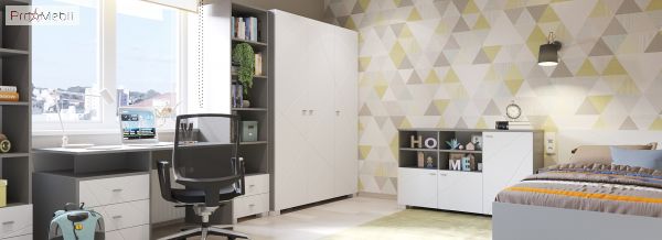 Класичне полуторне ліжко Х-12 X-Скаут Санті створить комфортну зону для сну. Полуторне ліжко - необхідний і чудовий елемент спального гарнітура, який гармонійно впишеться в інтер'єр. Ваша кімната стане ще більш практичною, затишною, красивою і стильною. Модне і практичне узголів'я значно підвищить зручність використання меблів. Ліжко комплектується міцною ламельною основою. Матрац купується окремо. Спальне місце становить 120х200 см. Корпус виготовляється з високоякісного ламінованого ДСП товщиною 18 мм австрійського виробника «EGGER», фасади - МДФ c фрезеруванням товщиною 16 мм виробництва Італія. Торці деталей обклеюються кромкою ПВХ фірми Rehau. Меблі X-Скаут Santi випускаються в контрастному поєднанні «сірого матового» корпусу з «білими матовими» фасадами. Характерними особливостями меблів X-Skaut Santi є сучасний дизайн, прості геометричні форми модулів, елегантне фрезерування на фасадах. Меблі X-Скаут Санті це спосіб унікального аранжування інтер'єру дитячої кімнати, в якій Ви створите унікальний, наповнений легкістю лофт-інтер'єр.