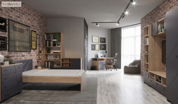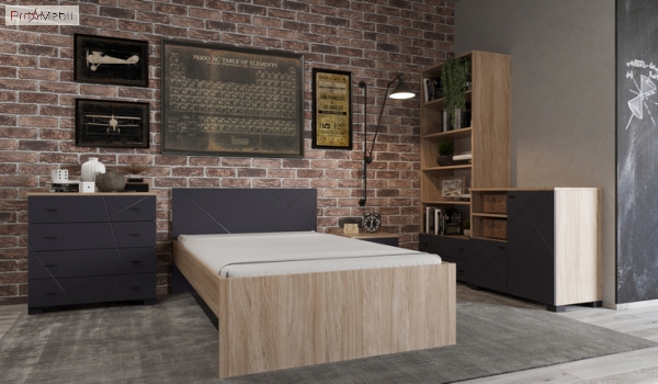 Класичне двоспальне ліжко Х-16 X-Скаут Санті створить комфортну зону для сну. Двоспальне ліжко - необхідний і чудовий елемент спального гарнітура, який гармонійно впишеться в інтер'єр. Ваша кімната стане ще більш практичною, затишною, красивою і стильною. Модне і практичне узголів'я значно підвищить зручність використання меблів. Ліжко комплектується міцною ламельною основою. Матрац купується окремо. Спальне місце становить 160х200 см. Корпус виготовляється з високоякісного ламінованого ДСП товщиною 18 мм німецького концерну «Kronospan», фасади - МДФ c фрезеруванням товщиною 16 мм виробництва Італія. Торці деталей обклеюються кромкою ПВХ фірми Rehau. Меблі X-Скаут Santi випускаються в контрастному поєднанні «графітових матових» фасадів та корпусу «дуб кам’яний» з природною структурою деревини. Характерними особливостями меблів X-Skaut Santi є сучасний дизайн, прості геометричні форми модулів, елегантне фрезерування на фасадах. Меблі X-Скаут Санті це спосіб унікального аранжування інтер'єру дитячої кімнати, в якій Ви створите унікальний, наповнений легкістю лофт-інтер'єр.