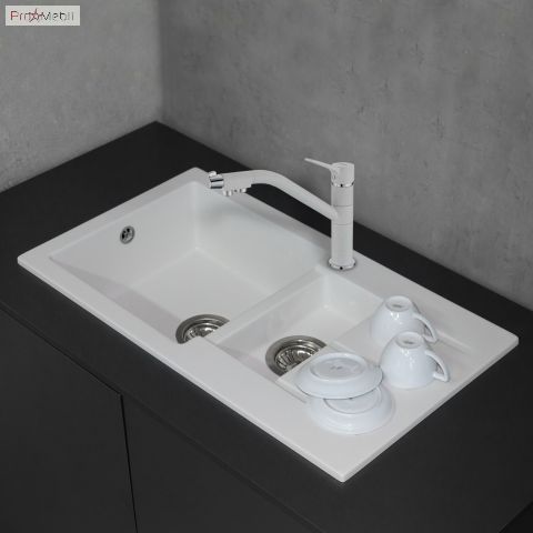 Купити кухонну мийку Alabama білу Fancy Marble в Україні, Києві, Дніпрі