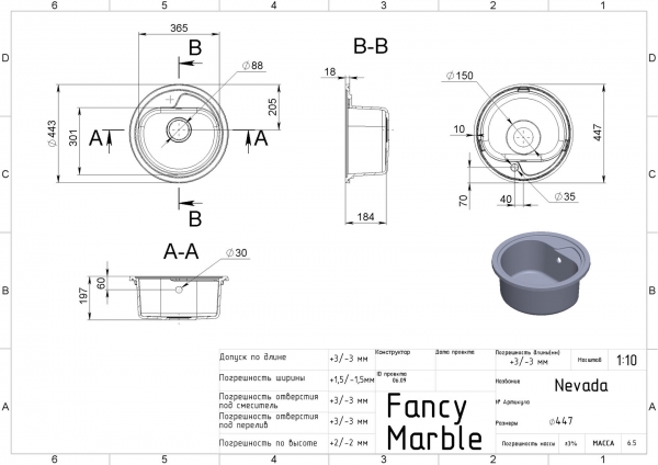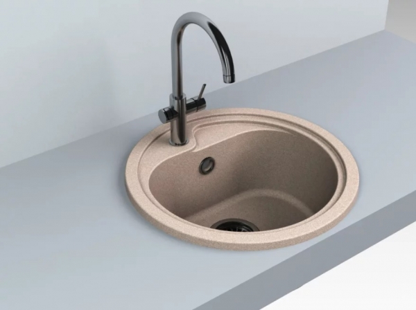 Кухонна мийка Fancy Marble Nevada пісочна - кругла врізна мийка з литого каменю. Мийка для кухні Fancy Marble Nevada - містка та практична модель з однією глибокою чашею, в яку міститься достатня кількість брудного посуду. Отвору під змішувач немає. У комплект входить: кухонна мийка, посібник користувача, кріплення (на мийці), сифон. Композитний матеріал складається з поліефірної смоли та мінералів (кварц пісок, подрібнений мармур). Завдяки наповнювачам матеріал міцний, завдяки смолі добре тримає форму. Мийки чудово підходять для домашнього використання: нарізайте на ній овочі та фрукти, мийте в ній посуд, використовуйте так, як заманеться. Вона чудово впорається з поставленим завданням!