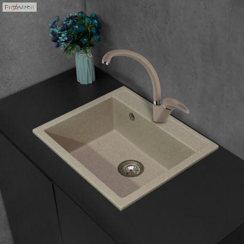 Кухонна мийка Fancy Marble Oregon пісочна - прямокутна врізна мийка з литого каменю. Мийка для кухні Fancy Marble Oregon - містка та практична модель з однією глибокою чашею, в яку міститься достатня кількість брудного посуду. Отвору під змішувач немає. В комплект входить: кухонна мийка, посібник користувача, кріплення (на мийці), сифон, заглушка отвору 35 мм. Композитний матеріал складається з поліефірної смоли та мінералів (кварц пісок, подрібнений мармур). Завдяки наповнювачам матеріал міцний, завдяки смолі добре тримає форму. Мийки чудово підходять для домашнього використання: нарізайте на ній овочі та фрукти, мийте в ній посуд, використовуйте так, як заманеться. Вона чудово впорається з поставленим завданням!