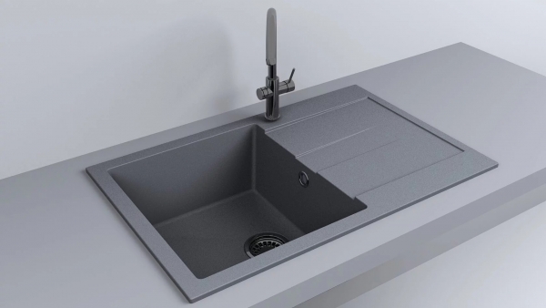 Кухонна мийка Fancy Marble Connecticut сіра - прямокутна врізна мийка з литого каменю. Мийка для кухні Fancy Marble Yuta - містка та практична модель з однією об'ємною чашею та крилом для сушіння посуду. Отвору під змішувач немає. В комплект входить: кухонна мийка, посібник користувача, кріплення (на мийці), сифон, заглушка отвору 35 мм. Композитний матеріал складається з поліефірної смоли та мінералів (кварц пісок, подрібнений мармур). Завдяки наповнювачам матеріал міцний, завдяки смолі добре тримає форму. Мийки чудово підходять для домашнього використання: нарізайте на ній овочі та фрукти, мийте в ній посуд, використовуйте так, як заманеться. Вона чудово впорається з поставленим завданням!