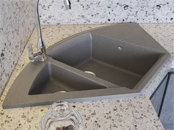Сіра кутова кухонна мийка EUROPE MIRAGGIO - це поєднання комфорту та практичності. Кухонна мийки виробляються за авторською технологією MIRASTONE - змішування кварцового піску та поліефірної смоли у вакуумі. Кварцовий пісок стійкий до перепадів температур, виріб відрізняється міцністю, не вступає у реакції з іншими речовинами, не змінює колір у процесі експлуатації. Поверхня виробу має однорідну матову текстуру та колір по всій товщі стін, а також у її структурі відсутні мікропори, що виключає розвиток бактерій. Кухонна мийка врізного монтажу Europe grey Miraggio - має одну основну чашу та невелику додаткову чашу, яку можна використовувати для миття овочів та фруктів, столового приладдя або навіть для розморожування продуктів окремо від всього посуду, а також ліворуч від чаші мийка обладнана крилом. У комплекті постачається сифон та кріплення для додаткової фіксації мийки зі стільницею. MIRAGGIO пропонує Вам широкий вибір кухонних мийок, які стануть ідеальним доповненням до Вашого інтер'єру та допоможуть Вам зробити кухню ще більш функціональною та стильною.