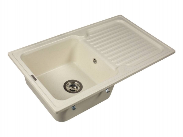 Прямокутна кухонна мийка кольору жасмін ORLEAN українського бренду MIRAGGIO має практичний та стильний вигляд, що чудово доповнить дизайн вашої кухні. Мийка виробляються за авторською технологією MIRASTONE - змішування кварцового піску та поліефірної смоли у вакуумі, завдяки чому стійка до перепадів температур, відрізняється міцністю, не вступає у реакції з іншими речовинами, не змінює колір у процесі експлуатації. Поверхня виробу має однорідну матову текстуру та колір по всій товщі стін, а також у її структурі відсутні мікропори, що виключає розвиток бактерій. Кухонна мийка прямокутної форми Orlean jasmine Miraggio - має одну глибоку чашу та додаткове ребристе неслизьке крило для сушіння посуду, що робить процес миття посуду швидким та легким. У комплекті постачається сифон та кріплення для додаткової фіксації мийки зі стільницею. MIRAGGIO пропонує Вам широкий вибір кухонних мийок, які стануть ідеальним доповненням до Вашого інтер'єру та допоможуть Вам зробити кухню ще більш функціональною та стильною.