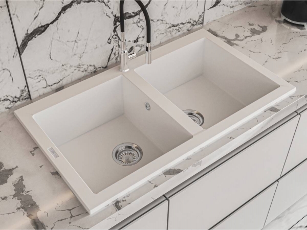 Біла кухонна мийка WESTEROS MIRAGGIO стане незамінним помічником на вашій кухні! Кухонна мийки виробляються за авторською технологією MIRASTONE - змішування кварцового піску та поліефірної смоли у вакуумі. Кварцовий пісок стійкий до перепадів температур, виріб відрізняється міцністю, не вступає у реакції з іншими речовинами, не змінює колір у процесі експлуатації. Поверхня виробу має однорідну матову текстуру та колір по всій товщі стін, а також у її структурі відсутні мікропори, що виключає розвиток бактерій. Прямокутна кухонна мийка Westeros white Miraggio з двома прямокутними однаковими чашами з врізний монтаже, що дозволяє вдало інтегрувати її практично у більшість сучасних кухонних гарнітурів. У комплекті постачається сифон та кріплення для додаткової фіксації мийки зі стільницею. MIRAGGIO пропонує Вам широкий вибір кухонних мийок, які стануть ідеальним доповненням до Вашого інтер'єру та допоможуть Вам зробити кухню ще більш функціональною та стильною.