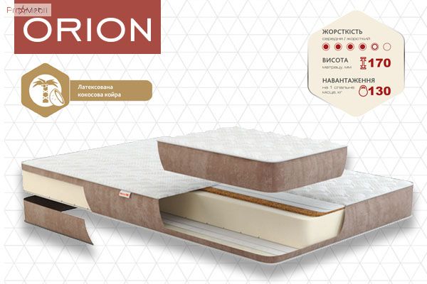 Матрац Orion 90x200 української фабрики Come-for - це безпружинна модель в серії матраців Infinity. Двостороння модель матраца з шаром кокосової койри з одного боку. Чудова модель для людей з підвищенною масою тіла. Неперевершене поєднання непідресореної основи, латексованої кокосової койри і м'якої піни додадуть відчуття ідеального комфорту. Вам гарантовано не тільки правильне положення тіла під час сну, а ще неперевершена ніч з бадьорим ранком.