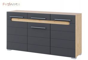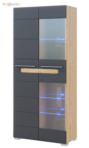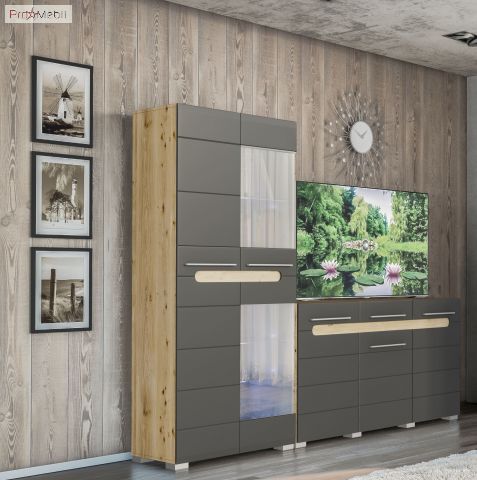 Стінка Б'янко графіт Світ Меблів - елегантна та сучасна колекція українського виробника Світ Меблів для облаштування затишної вітальні. Корпус виготовляють із високоякісної ДСП завтовшки 16 мм у природному кольорі «дуб артизан» з яскраво вираженим малюнком деревини, а контрастні «графітові» фасади з МДФ завтовшки 16 мм гармонійно відтіняють дубовий відтінок і мають чудовий вигляд. Родзинкою колекції Бьянко графіт Світ Меблів є - прості геометричні форми; фасади з фрезеруванням, декоровані з внутрішнього боку контрастною планкою; довгі пластикові ручки кольору сатин; акуратні, невеликі пластикові ніжки; фірмові петлі, які забезпечують м'яке та безшумне закриття дверцят, висувні шухляди обладнано телескопічними направляючими. Вітрини оснащені прозорим загартованим склом 3 мм і комплектуються прихованим інтер'єрним світлодіодним підсвічуванням. Всі елементи колекції можна вільно комбінувати на свій розсуд, переставляти, міняти місцями, купувати додаткові предмети за потребою для облаштування всього будинку в єдиному стилі. Меблі Бьянко графіт Світ Меблів вигідно вписуються в будь-який інтер'єр і здатні стати родзинкою вашого будинку.