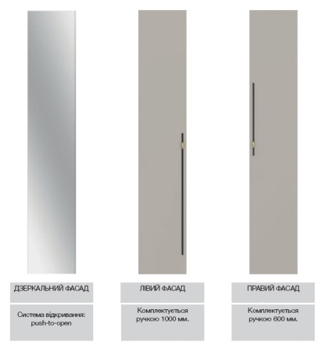кольори на вибір: корпус - корпус - дуб аппалачі, кашемір, німфея альба | фасад - графіт, графіт глянець, зелений димчастий, зелений димчастий глянець, кашемір, кашемір глянець, німфея альба, німфея альба глянець, тоффі, тоффі глянець, дзеркало |