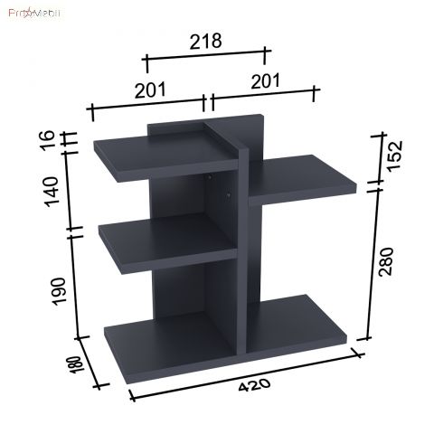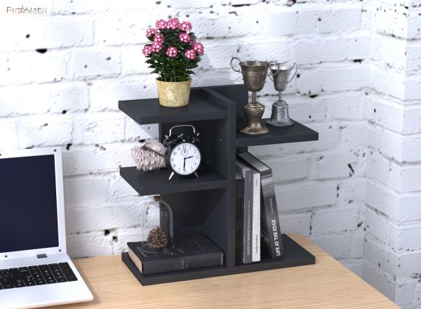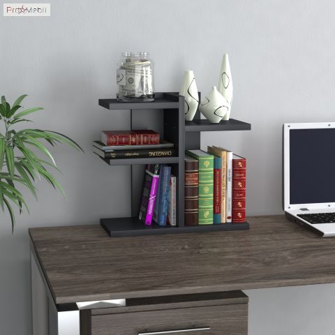 Надставка для письмового столу NS-1 незамінна річ для людини, яка любить чистоту і порядок на робочому місці. Ви зможете скласти на неї все блокноти та зошити в кінці робочого дня. У надставки є відділення для великих журналів або книг, а також невисокі зручні ніші для зошитів та інших дрібних предметів. На верхніх ярусах можна розташувати елементи декору, квітковий горщик або пенал для канцелярії. Саму надставку можна поставити у вільний кут стола, де вона не буде заважати. Матеріал виготовлення - ламіноване ДСП в кольорі антрацит, виробництва Egger (Австрія) товщиною 18 мм. Надставка NS-1 - повноцінний замінник настінного полки. У той же час, це витончена стильна річ, яка підкреслить ваш унікальний смак і нестандартний підхід до оформлення робочого простору.