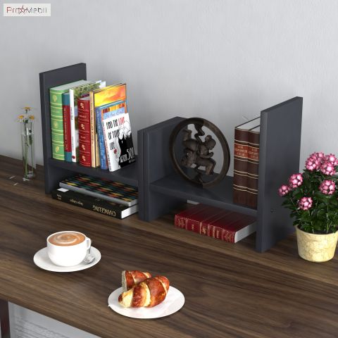 Надставка для письмового столу NS-2 відмінна річ для людини, яка любить чистоту і порядок на робочому місці. Це справжній трансформер, настроюється під потреби та побажання користувача. Надставка складається з двох однакових деталей, які можна скласти один на одного, а також використовувати окремо. Ширину надставки в складеному вигляді можна звужувати або розширювати за бажанням або в залежності від кількості предметів на ній. Ви зможете скласти на неї все блокноти та зошити в кінці робочого дня. У надставки є відділення для великих журналів або книг, а також невисокі широкі ніші для зошитів та інших предметів. На верхніх ярусах можна розташувати елементи декору, квітковий горщик або пенал для канцелярії. Саму надставку можна поставити у вільний кут стола, де вона не буде заважати. Матеріал виготовлення - ламіноване ДСП в кольорі антрацит, виробництва Egger (Австрія) товщиною 18 мм. Надставка NS-2 - повноцінний замінник настінного полки. У той же час, це витончена стильна річ, яка підкреслить ваш унікальний смак і нестандартний підхід до оформлення робочого простору.