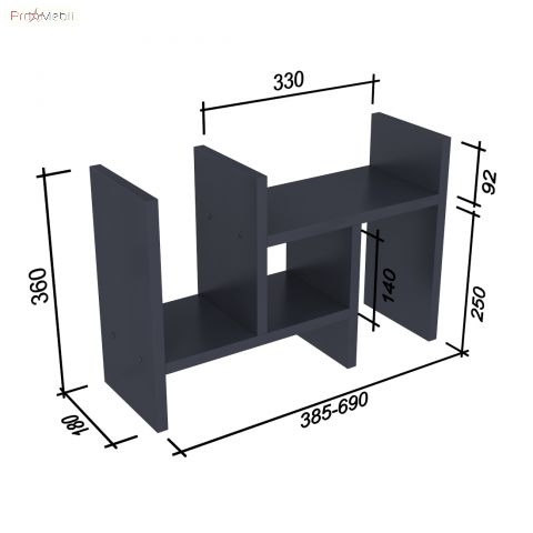 Надставка для письмового столу NS-2 відмінна річ для людини, яка любить чистоту і порядок на робочому місці. Це справжній трансформер, настроюється під потреби та побажання користувача. Надставка складається з двох однакових деталей, які можна скласти один на одного, а також використовувати окремо. Ширину надставки в складеному вигляді можна звужувати або розширювати за бажанням або в залежності від кількості предметів на ній. Ви зможете скласти на неї все блокноти та зошити в кінці робочого дня. У надставки є відділення для великих журналів або книг, а також невисокі широкі ніші для зошитів та інших предметів. На верхніх ярусах можна розташувати елементи декору, квітковий горщик або пенал для канцелярії. Саму надставку можна поставити у вільний кут стола, де вона не буде заважати. Матеріал виготовлення - ламіноване ДСП в кольорі німфея альба, виробництва Egger (Австрія) товщиною 18 мм. Надставка NS-2 - повноцінний замінник настінного полки. У той же час, це витончена стильна річ, яка підкреслить ваш унікальний смак і нестандартний підхід до оформлення робочого простору.