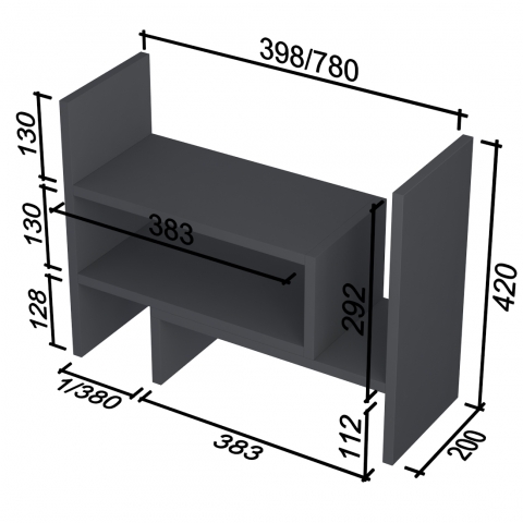 Надставка для письмового столу NS-4 від компанії Loft Design – добре підійде людям, які люблять чистоту та порядок на своєму робочому місці. Надставка складається з 2-х частин, тим самим надставка може змінювати ширину під ваші уподобання. Це справжня знахідка, зручна у використанні як для роботи, так і для навчання. Надставка має відділення для необхідних дрібних предметів, елементів декору, зошитів або книг. Саму надставку можна поставити у вільний кут столу, де вона не заважатиме. Матеріал виготовлення – ламіноване ДСП у кольорі антрацит товщиною 18 мм. Надставка NS-4 – повноцінна альтернатива настінної полиці. У той же час це витончена стильна річ, яка підкреслить ваш нестандартний підхід до оформлення робочого простору.