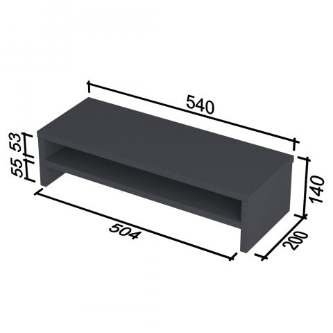Надставка під монітор NS-7 від компанії Loft Design – це стильна та практична підставка для вашого монітора. Матеріал виготовлення - ламіноване ДСП у кольорі німфея альба товщиною 18 мм, краї вкриті кромкою 2 мм. Розміри виробу: ширина виробу – 540 мм, глибина – 200 мм, висота 140 мм, ширина внутрішньої ніші – 504 мм. Надставка NS-7 чудово підійде для моноблоків чи моніторів. Подібні надставки використовуються для підняття екрана монітора на рівень ваших очей, в результаті чого ваша спина почуватиметься комфортно протягом тривалого часу, а згодом ваша постава стане кращою! Під надставкою є місце під клавіатуру та мишу.