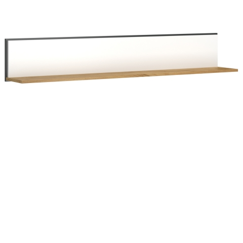 Настінна полиця 150 Палмор ВМВ сучасні меблі з унікальним характером у стилі лофт, призначені для облаштування модної та сучасної вітальні. Настінна полиця - ідеально підходить для зберігання книг, сувенірів і пам'ятних предметів. Корпус та фасади виготовляються з високоякісного ламінованого ДСП товщиною 16 мм у цікавому поєднанні кольорових рішеннях: дуб крафт золотий з яскраво вираженою фактурою деревини вигідно поєднується з фасадами білого кольору з темними елементами декору. Родзинкою колекції Palmor VMV Holding є відсутність ручок, їхню роль виконують фрезеровані на фасадах виїмки; темні металеві ніжки; фірмові телескопічні напрямні (повного безшумного висування) гарантують зручне використання та доступ до вмісту меблів. Меблі Палмор VMV - елегантно, ультрасучасно та модно.