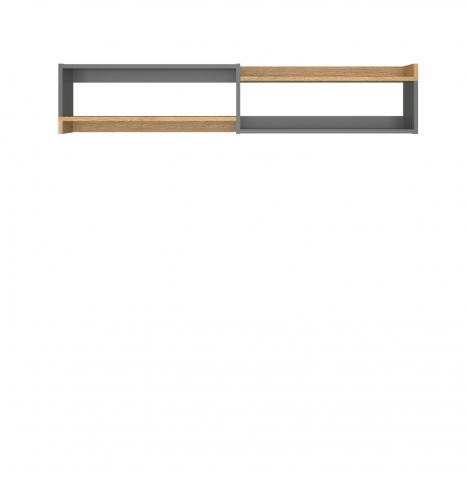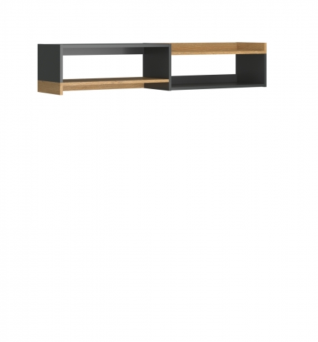 Екстравагантна настінна полиця Беріл для любителів стилю лофт від української меблевої фабрики VMV Holding для облаштування вітальні, а також його можна розмістити в робочому кабінеті або в офісі. Настінна полиця - ідеально підходить для зберігання книг, сувенірів і пам'ятних предметів. Корпус виготовляється з високоякісного ламінованого ДСП Kronospan товщиною 16 мм у контрастному кольоровому виконанні антрацит / дуб кам'яний, надаючи оригінальності та нестандартності. Полиця привертає увагу цікавим асиметричним дизайном; фірмовими комплектуючими. Меблі Beril VMV допоможуть створити неповторний шарм і характер інтер'єру Вашої вітальні.