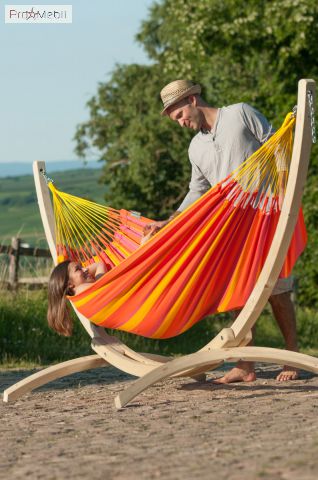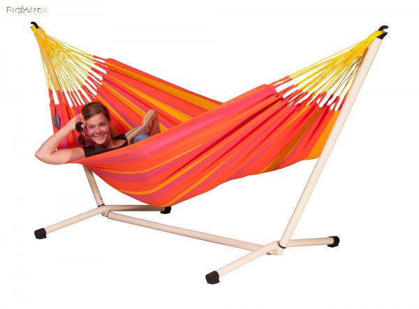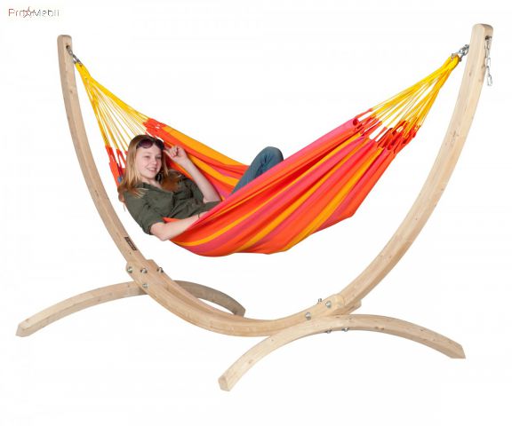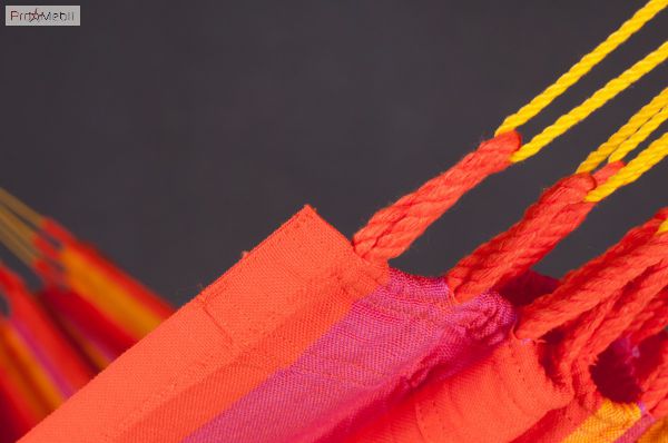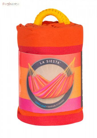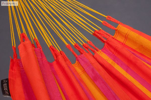 Погодоустойчивый подвесной гамак для одного Sonrisa mandarine - один из лучших гамаков ярких стойких цветов для летнего отдыха фирмы La Siesta. Гамак изготовлен в Колумбии из погодоустойчивого материала HamacTex (полипропилен). Большое количество шнуров для подвешивания оптимально распределяют вес вашего тела в гамаке и гарантируют удобный отдых и долговечность гамака. Особо прочные плетёные канаты обеспечивают дополнительную надёжность.