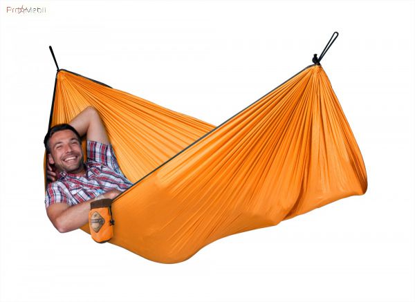 Туристический подвесной гамак для одного Colibri orange - очень лёгкий, изготовлен из мягкого и хорошо пропускающего воздух парашютного шёлка. Благодаря встроенной системе для подвешивания, гамак можно быстро подвесить или снять. С этим гамаком можно чувствовать себя комфортно повсюду, в дороге или дома. Ткань сохнет быстро и несмотря на свой малый вес очень прочная. Кроме того, гамак Colibri можно без особых усилий превратить в покрывало.
