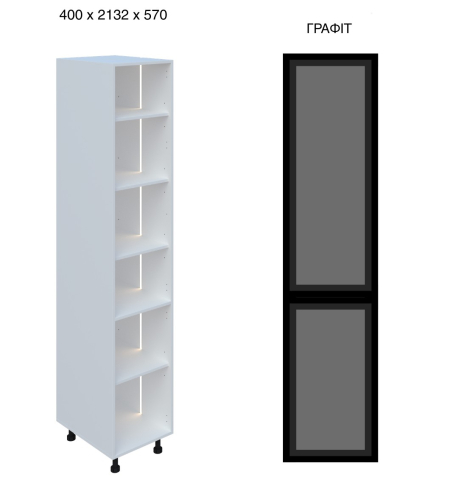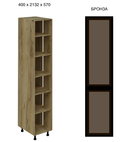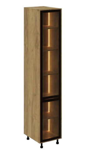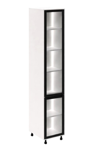 Кухонний пенал 40 СК LED (h-720) кухня Сью Світ Меблів - витончений вертикальний модуль, що акцентує увагу на світлі та візуальній глибині, який органічно доповнює композицію гарнітура, створюючи відчуття легкості та вишуканої архітектури простору. Він не перевантажує інтер'єр, а навпаки - додає йому простору та виразності за рахунок відкритої структури та м'якого підсвічування. Конструкція виконана у форматі пеналу з декількома полицями, доповненими вбудованим LED-підсвічуванням, яке делікатно підсвічує вміст і формує теплу, затишну атмосферу. Такий формат ідеально підходить для розміщення посуду, декоративних елементів, келихів або кухонних аксесуарів, дозволяючи не тільки зручно організувати зберігання, але й оформити інтер'єр, додавши йому індивідуальності. Корпус виготовлений з якісного ламінованого ДСП у відтінках «білий» та «дуб крафт золотий», що робить модуль універсальним для різних колірних рішень кухні, а скляні фасади в рамці чорного кольору (варіанти «графіт» або «бронза») надають конструкції сучасного характеру та легкого контрасту, підкреслюючи глибину та гру світла всередині. Встановлення на регульовані опори додає візуальної легкості та спрощує монтаж. Додатково до пеналу можна замовити регульовані ніжки у кольорі алюміній, надаючи конструкції візуальної легкості та завершеності. Кухня Сью Світ Меблів - простір, де кожен елемент працює на відчуття легкості, порядку та тихого, повсякденного комфорту.