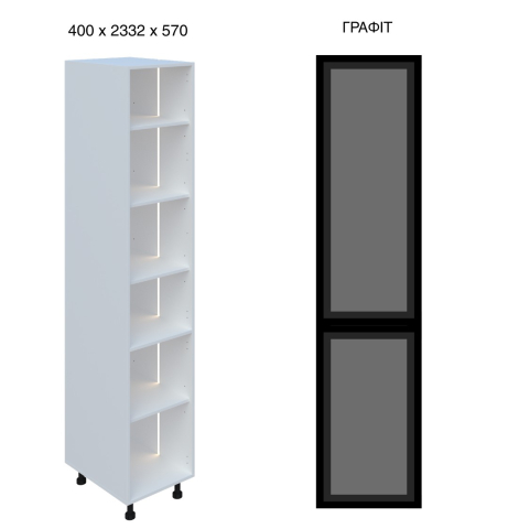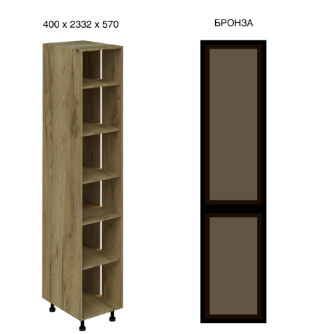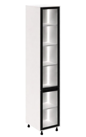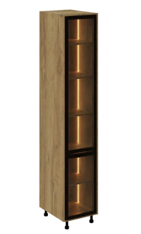 Кухонний пенал 40 СК LED (h-920) кухня Сью Світ Меблів - витончений вертикальний модуль, що акцентує увагу на світлі та візуальній глибині, який органічно доповнює композицію гарнітура, створюючи відчуття легкості та вишуканої архітектури простору. Він не перевантажує інтер'єр, а навпаки - додає йому простору та виразності за рахунок відкритої структури та м'якого підсвічування. Конструкція виконана у форматі пеналу з декількома полицями, доповненими вбудованим LED-підсвічуванням, яке делікатно підсвічує вміст і формує теплу, затишну атмосферу. Такий формат ідеально підходить для розміщення посуду, декоративних елементів, келихів або кухонних аксесуарів, дозволяючи не тільки зручно організувати зберігання, але й оформити інтер'єр, додавши йому індивідуальності. Корпус виготовлений з якісного ламінованого ДСП у відтінках «білий» та «дуб крафт золотий», що робить модуль універсальним для різних колірних рішень кухні, а скляні фасади в рамці чорного кольору (варіанти «графіт» або «бронза») надають конструкції сучасного характеру та легкого контрасту, підкреслюючи глибину та гру світла всередині. Встановлення на регульовані опори додає візуальної легкості та спрощує монтаж. Додатково до пеналу можна замовити регульовані ніжки у кольорі алюміній, надаючи конструкції візуальної легкості та завершеності. Кухня Сью Світ Меблів - простір, де кожен елемент працює на відчуття легкості, порядку та тихого, повсякденного комфорту.