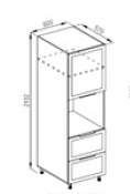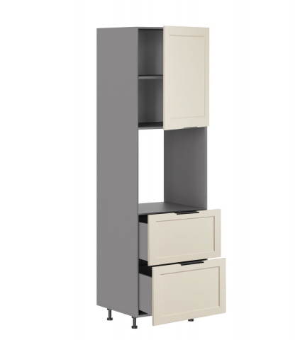 Кухонний пенал 60 ДШ (h-720) кухня Анна Світ Меблів допоможе грамотно спланувати кухонний простір: і вільного місця буде більше, і господині зручно готувати та сформує додаткову зону для зберігання кухонного інвентарю на кухні. Дана конструкція оснащена одним закритим відділенням з поличкою всередині, відкритою нішею і двома висувними шухлядами з роликовими направляючими, де можна розмістити різне кухонне приладдя, посуд, техніку і багато чого іншого. Додатково до пеналу можна замовляти цокольні планки, які запобігають попаданню вологи та бруду, або регульовані ніжки у кольорі алюміній замість царги. Корпус виготовляється з якісного ламінованого ДСП у популярних кольорових рішеннях на вибір «білий», «дуб сонома», «графіт», «попелястий» та «дуб крафт золотий» з фасадами з фарбованого МДФ у кольорових рішеннях на вибір «айворі», «аквамарин темний», «балі зелений», «білий шовк», «графіт», «капучіно», «кораловий», «червоний», «лаванда», «м'ята», «нефрит», «пломбірі», «пудровий», «сірий оксамит», «шоколад». Унікальна кухня Анна Світ Меблів дозволить Вам спроектувати кухню, використовуючи її потенціал таким чином, щоб повсякденне приготування їжі приносило задоволення.