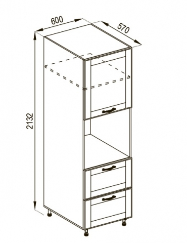 Місткий пенал 60 ДШ LUX (h-720) кухня Домініка Світ Меблів - елемент модульної кухні, який легко справляється з завданням економії простору. Завдяки своїм внутрішнім розмірам і наявності одного закритого відділень з поличкою всередині, відкритої ніші і двох висувних шухляд з телескопічними направляючими повного висування, в пеналі можливо розмістити всі потрібні в господарстві речі. Пенал знайде найширше застосування, в ньому можна зберігати не тільки посуд, але і вбудовувати мікрохвильову піч, духовку, кавоварку, а також і інші види побутової техніки. Додатково до тумби можна замовляти цокольні планки, які запобігають попаданню вологи та бруду, або регульовані ніжки у кольорі алюміній замість царги. Корпус виготовляється з якісного ламінованого ДСП у популярних кольорових рішеннях на вибір «білий», «дуб сонома», «графіт», «попелястий» та «дуб крафт золотий» з фасадами із МДФ у кольорових рішеннях на вибір «аквамарин темний», «сірий оксамит» та «білий шовк». Кухня Домініка Світ Меблів допоможе створити ідеальний варіант для Вашого інтер'єру.