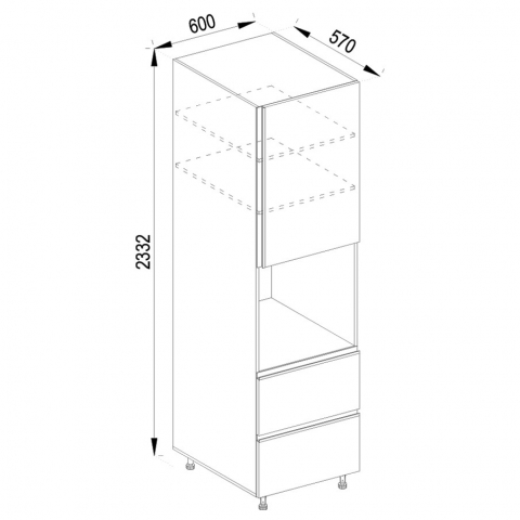 Шафа-пенал 60 ДШ LUX кухня Софі ДСП Світ Меблів вдало впишеться в інтер'єр, підвищить функціональні можливості кухні і заощадить простір. Завдяки своїй оптимальній витягнутій формі і наявності одного закритого відділення з двома поличками всередині, відкритої ніші і двох висувних шухляд на телескопічних направляючих повного висування, дозволяє розмістити найрізноманітніші кухонні предмети. Туди можна поставити каструлі, сковорідку, зберігати там тарілки, чашки та ін. Відмінно помістяться різноманітні спеції, а також ваша кухонна вбудована техніка. Додатково до тумби можна замовляти цокольні планки, які запобігають попаданню вологи та бруду, або регульовані ніжки у кольорі алюміній замість царги. Корпус і фасадні частини виготовлені з якісного ламінованого ДСП товщиною 16 мм у кольорових рішеннях на вибір «білий», «графіт», «дуб крафт золотий», «дуб сонома», «попелястий» із чарівними фасадами на вибір «артвуд світлий», «білий», «бензин», «бетон темний», «глиняний сірий», «графіт», «дуб якібан», «індиго», «кашемір», «лемонграс», «морське дерево вінтаж», «вугільний камінь», «холодний блакитний», «чорний», «шовковий камінь». Кухня Софі Світ Меблів - елегантна, що стимулює гарний настрій та заряд бадьорості, створить оригінальний простір в інтер'єрі та буде виглядати чудово!