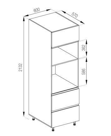 пенал містить одне закрите відділення, відкриті ніші під духовку та мікрохвильову та дві висувні шухляди |