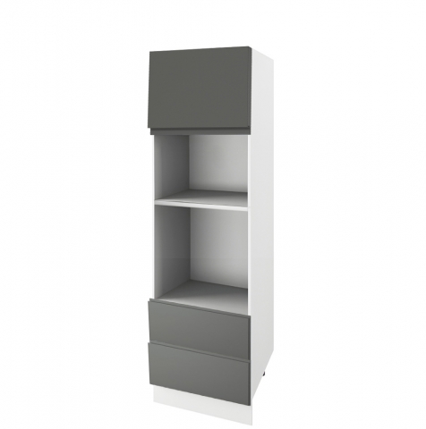 Кухонний пенал під духовку та мікрохвильову 60 ДШ LUX (h-720) кухня Влада Світ Меблів стане вигідним рішенням та створить у приміщенні досить гармонійний та оригінальний дизайн, при цьому простір кухні стане більш зручним, комфортним та практичним, що важливо для дизайну кухонного простору та створення зони вільного пересування. Завдяки наявності одного закритого відділення, відкритих ніш під духовку та мікрохвильову та двох висувних шухляд з телескопічними направляючими повного висування, в пеналі можливо розмістити всі потрібні в господарстві речі. Пенал знайде найширше застосування, в ньому можна зберігати не тільки посуд, але і вбудовувати мікрохвильову піч, духовку, кавоварку, а також і інші види побутової техніки. Додатково до пеналу можна замовляти цокольні планки, які запобігають попаданню вологи та бруду, або регульовані ніжки у кольорі алюміній замість царги. Корпус виготовляється з якісного ламінованого ДСП у популярних кольорових рішеннях на вибір «білий», «дуб сонома», «графіт», «попелястий» та «дуб крафт золотий» з фасадами з фарбованого МДФ у кольорових рішеннях на вибір «айворі», «аквамарин темний», «балі зелений», «білий шовк», «графіт», «капучіно», «кораловий», «червоний», «лаванда», «м'ята», «нефрит», «пломбірі», «пудровий», «сірий оксамит», «шоколад». Кухня Влада Світ Меблів допоможе облаштувати кухню Вашої мрії, максимально ефективно використовуючи наявний простір.