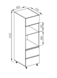 пенал містить одне закрите відділення, відкриті ніші під духовку та мікрохвильову та дві висувні шухляди |