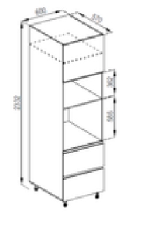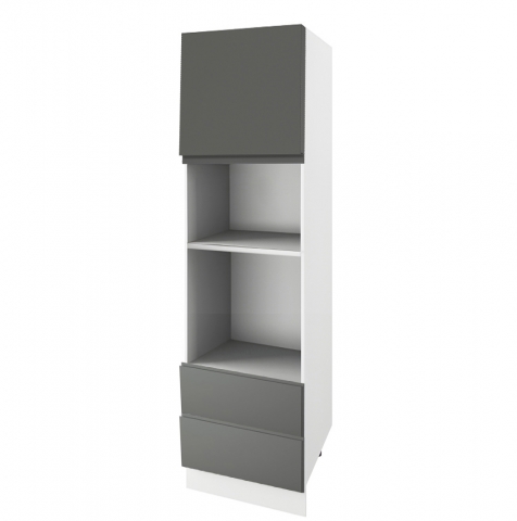 пенал містить одне закрите відділення з полицею всередині, відкриті ніші під духовку та мікрохвильову та дві висувні шухляди |