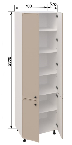 Кухонний пенал 70 2Д (h-920) від Сью Світ Меблів - функціональний та охайний модуль, який органічно доповнює композицію гарнітура, роблячи простір більш впорядкованим та зручним для щоденного використання, при цьому зберігаючи легкість та візуальну чистоту інтер’єру. Конструкція передбачає два закритих відділення з полицями, що дозволяє раціонально розмістити посуд, продукти або кухонне приладдя, звільняючи робочу зону та підтримуючи порядок. Додатково до пеналу можна замовляти цокольні планки, які запобігають попаданню вологи та бруду, або регульовані ніжки у кольорі алюміній замість царги. Корпус виконаний з якісного ламінованого ДСП у відтінках «білий», «дуб сонома», «попелястий», «графіт» і «дуб крафт золотий», а фасади з фарбованого МДФ доступні в широкій палітрі кольорів «білий шовк», «пломбір», «айворі», «мокко», «латте», «сірий оксамит», «попіл», «світла м'ята», «блакитний лід», «морська бірюза», «аквамарин темний», «синій електрик», «м'ята», «насичена оливка», «балі зелений», «жовтий промінь», «лаванда», «графіт» і «капучино», що дозволяє легко підібрати модуль в єдиному стилі кухні. Делікатно заокруглена рамка фасаду додає м'якості лініям, а матова ручка-кнопка в чорному кольорі підкреслює сучасний характер і акуратно розставляє контрастні акценти. Кухня Сью Світ Меблів - простір, де кожен елемент працює на відчуття легкості, порядку і тихого, повсякденного комфорту.