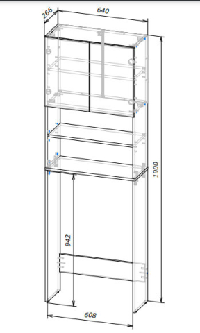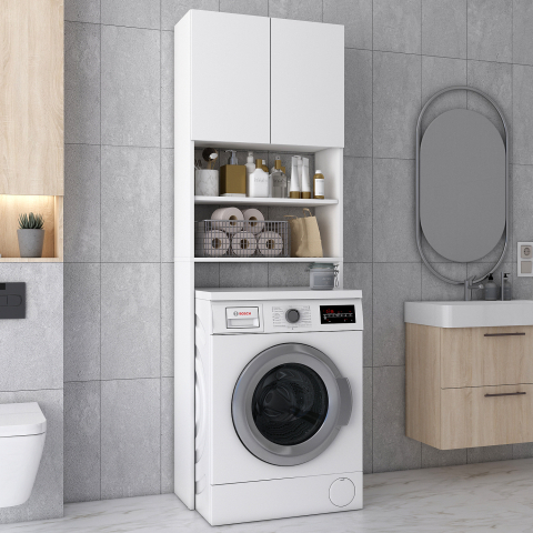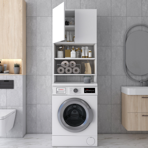 Пенал над пральною машиною Лола Міні Doros - це практичне і функціональне рішення для організації простору у ванній кімнаті. Пенал складається з декількох частин: відкритих ніш для зберігання різних побутових засобів, як-от пральні порошки, кондиціонери, засоби для виведення плям та інші засоби для догляду за білизною, закритого відділення з полицями всередині, призначеного для зберігання різних предметів, як-от рушники, побутова хімія, косметика та інші потрібні речі, полиці дають змогу зручно організувати простір, щоб усе було під рукою, але приховано від сторонніх очей, і спеціального простору в нижній частині, призначеного для встановлення пральної машини. Такий пенал забезпечує зручність, порядок і економію простору у ванній кімнаті.