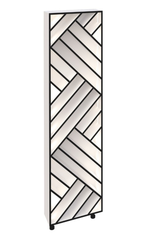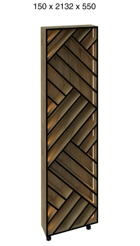 Кухонний пенал для пляшок LED (h-720) кухня Сью Світ Меблів - виразний декоративно-функціональний модуль, який додає інтер’єру глибини та характеру, перетворюючи зберігання на стильний акцент, зберігаючи при цьому відчуття легкості та візуальної чистоти простору. Конструкція пеналу виконана у форматі відкритого вертикального стелажа, доповненого геометричним фасадом та вбудованим LED-підсвічуванням, яке м'яко підкреслює лінії та створює ефектне світіння, наповнюючи кухню теплою атмосферою. Модуль ідеально підходить для розміщення пляшок, келихів або декоративних елементів, дозволяючи акуратно організувати зберігання і одночасно оформити інтер'єр. Корпус виконаний з якісного ламінованого ДСП у відтінках «білий» та «дуб крафт золотий», що робить модель універсальною для різних колірних рішень кухні, а контрастний декоративний фасад з чорними лініями додає динаміки та сучасного характеру. Додатково до пеналу можна замовити регульовані ніжки в кольорі алюміній, що надає конструкції візуальної легкості та завершеності. Кухня Сью Світ Меблів - простір, де кожен елемент працює на відчуття легкості, порядку та тихого, повсякденного комфорту.