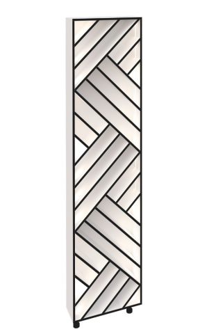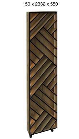 Кухонний пенал для пляшок LED (h-920) кухня Сью Світ Меблів - виразний декоративно-функціональний модуль, який додає інтер’єру глибини та характеру, перетворюючи зберігання на стильний акцент, зберігаючи при цьому відчуття легкості та візуальної чистоти простору. Конструкція пеналу виконана у форматі відкритого вертикального стелажа, доповненого геометричним фасадом та вбудованим LED-підсвічуванням, яке м'яко підкреслює лінії та створює ефектне світіння, наповнюючи кухню теплою атмосферою. Модуль ідеально підходить для розміщення пляшок, келихів або декоративних елементів, дозволяючи акуратно організувати зберігання і одночасно оформити інтер'єр. Корпус виконаний з якісного ламінованого ДСП у відтінках «білий» та «дуб крафт золотий», що робить модель універсальною для різних колірних рішень кухні, а контрастний декоративний фасад з чорними лініями додає динаміки та сучасного характеру. Додатково до пеналу можна замовити регульовані ніжки в кольорі алюміній, що надає конструкції візуальної легкості та завершеності. Кухня Сью Світ Меблів - простір, де кожен елемент працює на відчуття легкості, порядку та тихого, повсякденного комфорту.