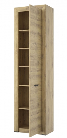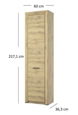 Пенал 1D Sapori Mebel Bos в елегантному та стильному рішенні, додасть багатство та шарм інтер'єру вітальні, їдальні, спальні та навіть передпокою. Пенал містить одне закрите відділення, всередині якого розміщені п’ять поличок. Колекція зачарує Вас своїм дизайном; простими формами; дивовижним теплим кольоровим виконанням "дуб наварра"; декоративними рамами по периметру фасадів, надаючи масивності та елегантності; злегка вигнутими металевими ручками чорного кольору; стійкими, непомітними пластиковими ніжками; фірмовими комплектуючими. Меблі Сапорі Меблі Бос, безперечно, створять спокійну, гармонійну атмосферу, яка привнесе в інтер'єр почуття розслабленості та затишку.