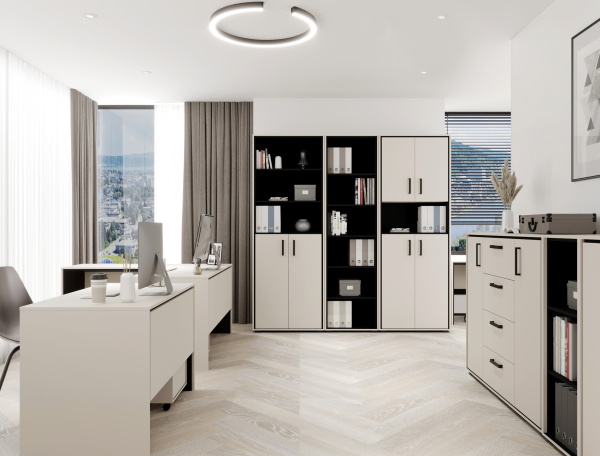 Пенал REG2D/80 Прайм від Gerbor - стильне і продумане рішення для офісу, де функціональність поєднується з естетикою, створюючи комфортне й організоване робоче середовище. Пенал містить три відкриті відділення і одне закрите відділення з двома полицями всередині, забезпечуючи зручне зберігання як декоративних елементів, так і особистих речей, які хочеться тримати поза увагою. Пенал захоплює виразною сучасною естетикою, де витончена палітра «кашеміру» та глибокого «чорного» поєднується з чіткою геометрією форм, витончені ручки Etera Plast, стійкі ніжки та преміальна фурнітура, перетворюють кожен елемент на гармонійну частину цілісного простору, сповненого стилю, комфорту та функціональності. Прайм Gerbor - інструмент для створення стильного і продуманого офісу, де кожна деталь сприяє результативній роботі, надихає і відображає респектабельний вигляд компанії.