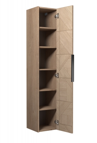 Елегантний пенал у ванну кімнату П-33-А Illusion Мойдодир, несе в собі частку краси і функціональності, створюючи ідеальний простір для початку і завершення вашого дня. Підвісний пенал у своїй конструкції має одне закрите відділення з полицями всередині. Характерними особливостями меблів є втілення елегантності та функціональності; флюктуйована дерев'яна текстура, що вражає стильним візерунком, створюючи тривимірний вигляд; натуральний деревний відтінок; чорні ручки, що, наче акценти в симфонії дизайну, додають вишуканості й сучасного шарму; підвісний монтаж - подарує відчуття легкості й невагомості, даючи змогу вам використовувати простір під, на власний розсуд; фірмові комплектуючі. Illusion Мойдодир - це не просто меблі, це мистецтво, яке перетворить вашу ванну кімнату і щодня нагадуватиме про красу простих речей.