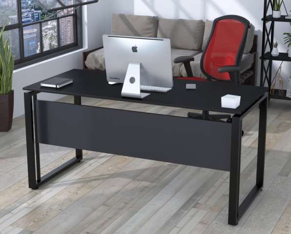 Письмовий стіл G-160-18 Loft Design - це покращений варіант письмового столу, доповнений царгой, яка не тільки закриває ноги, але і робить конструкцію столу більш стійкою і жорсткою. Стіл G-160-18 зберігає класичний зовнішній вигляд, але при цьому є не тільки містким і практичним, але і більш стійким! Ця модель столу відмінно підійде любителям просторого приміщення, прикрасить сучасний і лофт інтер'єр. Розміри стільниці моделі G-160-18 складають 1600х700 мм. Матеріал стільниці - ДСП з ламінованим покриттям, товщина 18 мм. Воно має високу зносостійкість і не вимагає особливого догляду. В наявності є кольори: венге луїзіана, горіх модена, дуб крафт золотий, дуб палена, чорний. Висота виробу становить 75,5 см. Каркас виготовлений з металевої труби з профілем 50х25 мм і пофарбований порошковою фарбою чорного кольору. Конструкція столу проста в збірці: дві боковини з'єднані між собою двома балками, на які кладеться стільниця, а царга між боковинами зміцнює каркас, роблячи його більш стійким. Регульовані ніжки дозволять виставити виріб на нерівній поверхні. На вибір покупця стіл може бути оснащений отвором для комп'ютерних кабелів чи ні. Стіл G-160-18 можна придбати окремо і в комплекті з іншими меблями колекції LoftDesign.