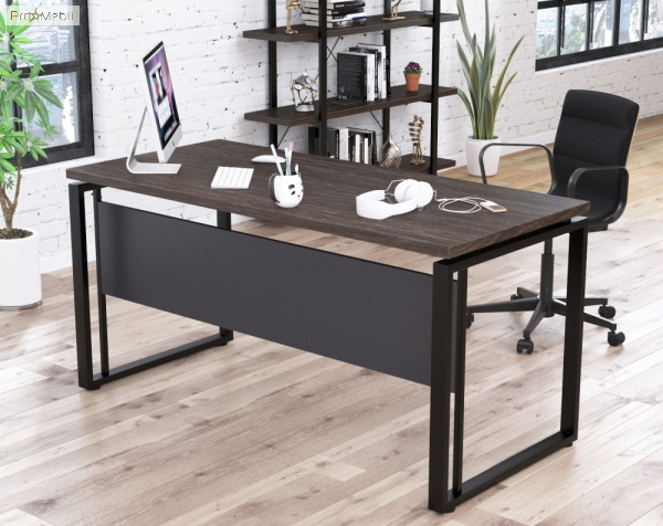 Письмовий стіл G-160-36 Loft Design - це покращений варіант письмового столу, доповнений царгой, яка не тільки закриває ноги, але і робить конструкцію столу більш стійкою і жорсткою. Стіл G-160-36 зберігає класичний зовнішній вигляд, але при цьому є не тільки містким і практичним, але і більш стійким! Ця модель столу відмінно підійде любителям просторого приміщення, прикрасить сучасний і лофт інтер'єр. Розміри стільниці моделі G-160-36 складають 1600х700 мм. Матеріал стільниці - ДСП з ламінованим покриттям, товщина 32 мм. Воно має високу зносостійкість і не вимагає особливого догляду. В наявності є кольори: венге луїзіана, горіх модена, дуб крафт золотий, дуб палена. Висота виробу становить 77 см. Каркас виготовлений з металевої труби з профілем 50х25 мм і пофарбований порошковою фарбою чорного кольору. Конструкція столу проста в збірці: дві боковини з'єднані між собою двома балками, на які кладеться стільниця, а царга між боковинами зміцнює каркас, роблячи його більш стійким. Регульовані ніжки дозволять виставити виріб на нерівній поверхні. На вибір покупця стіл може бути оснащений отвором для комп'ютерних кабелів чи ні. Стіл G-160-36 можна придбати окремо і в комплекті з іншими меблями колекції LoftDesign.