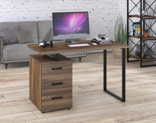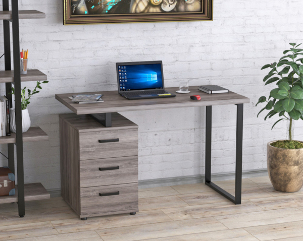 Письмовий стіл L-27 Loft design Loft Design- сучасний і стильний робочий стіл, ідеальним чином поєднує в собі красу, зручність і універсальність дизайну. Однаково добре підходить для офісу і вдома, чудово впишеться в будь-який сучасний дизайн; особливо виграшно виглядатиме в інтер'єрі в стилі «лофт». Дизайнерський стіл забезпечений місткою тумбою з шухлядами (можливо, за бажанням покупця, розміщення праворуч або ліворуч). Тумба забезпечена трьома шухлядами: глибоким і двома звичайними. Каркас дизайнерського столу виконаний з міцного металу, що робить річ надзвичайно стильною і міцної одночасно. А простора масивна стільниця з хорошого ламінованого ДСП додасть вашому робочому кабінеті респектабельності і солідності. Є кілька колірних варіантів для покриття стільниці.
