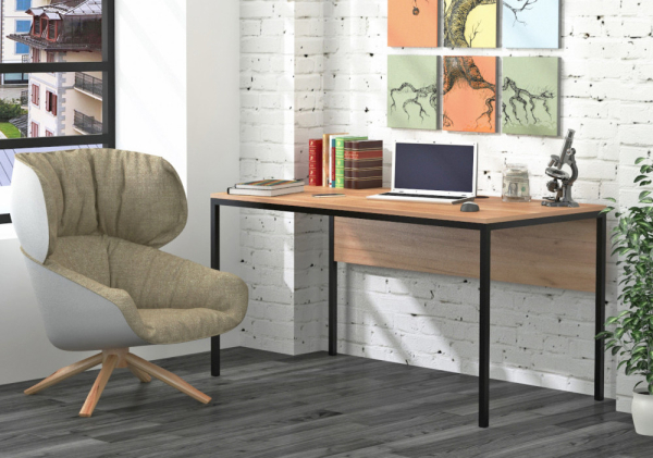 Стильний і практичний письмовий стіл L-3p від компанії Loft design - краще рішення для офісів. Модель має значні розміри: ширина 138 см, глибина 70 см. Витончений і в той же час міцний металевий каркас забезпечує міцність столу і не завантажує простір інтер'єру. Дана модель стола виготовляється в двох варіантах: з отвором і без отвору по проводу. В даний отвір ви можете заховати дроти від пристроїв на столі, щоб вони не звисали безладно зі столу. Каркас виконаний з металу. Ширина металевого профілю 25*25, товщина листа 1,3 мм. Стільниця виготовлена з ЛДСП товщиною 18 мм з кромкою 2 мм. Стіл продуманий до дрібниць. Він простий і ділової одночасно. Поєднання властивостей металу і ЛДСП надають столу міцність і красу. Використання кращих матеріалів і фурнітури робить цей стіл надійним і довговічним. На виробництві використовується німецьке обладнання Homag, яке дозволяє виробляти продукцію, що відповідає європейським стандартам.