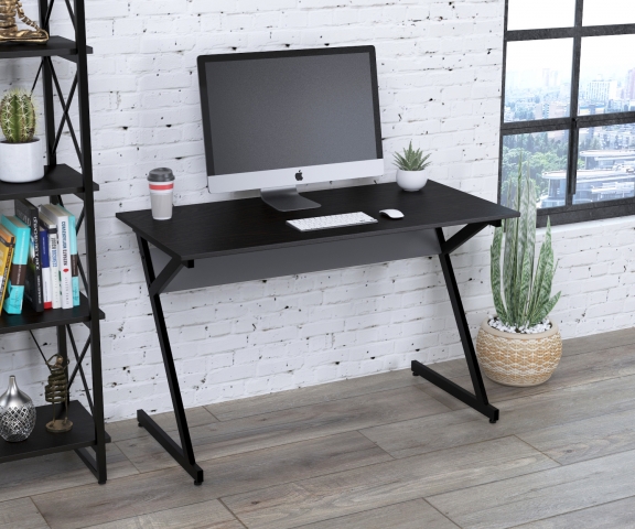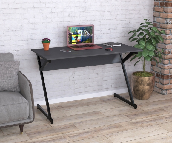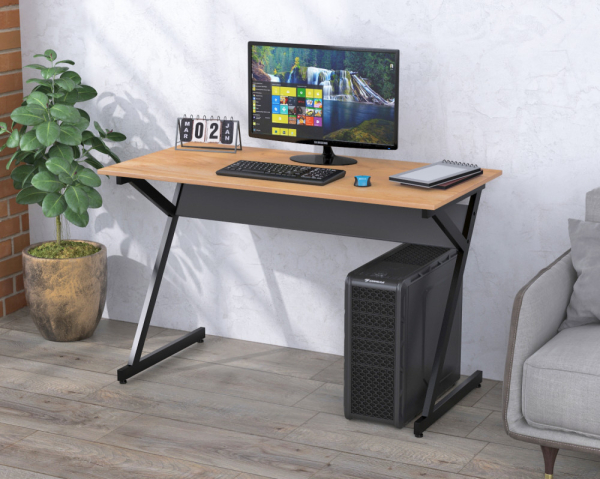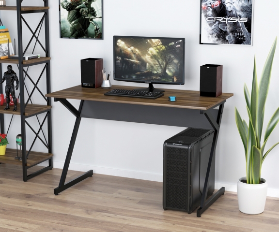Письмовий стіл L-7-120 Loft Design – це збільшена модифікація супер-популярного столу L-7. Стіл L-7-120 має оригінальну конструкцію корпусу, яка ламає наші стереотипи про столи. Замість звичних чотирьох опор тут дві Z-подібні ніжки, виконані з металевої труби 40*20 мм. Похилі лінії столу надають його зовнішньому вигляду динаміки. Металевий каркас виконаний із міцного металу з товщиною стінки 1,4 мм. Крім Z-подібних ніжок у столу є металева балка, яка підтримує стільницю. Між ногами встановлено балку жорсткості із ДСП у кольорі антрацит. Метал пофарбований чорною порошковою фарбою з матовим відтінком, що стійка до фізичних впливів. Внизу опор є малі регульовані ніжки, призначені для компенсації нерівностей підлоги. Стільниця виготовлена з замінованого ДСП завтовшки 18 мм. По периметру вона обклеєна двома міліметровою кромкою з ПВХ. ДСП представлено у п'яти кольорах: антрацит, венге луїзіана, горіх модена, дуб крафт золотий, дуб палена. Стіл збирається за допомогою гвинтів та шестигранника, які йдуть у комплекті. Стіл L-7-120 Loft Design не тільки не захаращує кімнату, а й освіжає інтер'єр, робить його молодіжнішим.