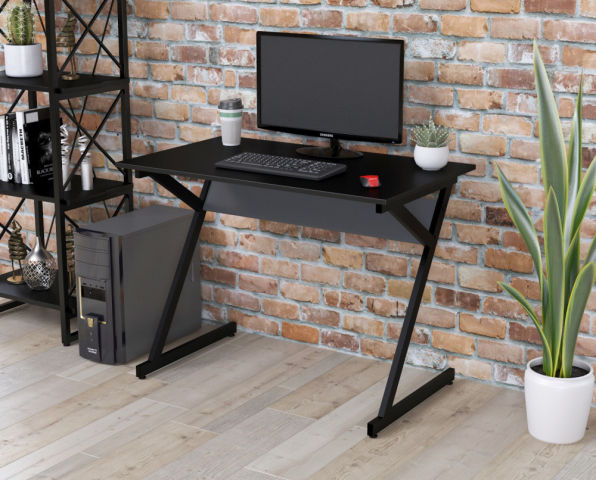 Сучасний стіл L-7 для дому чи офісу не тільки не захаращує кімнату, але й освіжає інтер'єр, надає динаміки та молодіжності. Стіл L-7 має оригінальну конструкцію корпусу, яка ламає наші стереотипи про столи. Замість звичних нам чотирьох опор тут дві Z-подібні ніжки, виконані з металевої труби 40*20 мм. Між ногами встановлена балка жорсткості з ДСП у кольорі антрацит, а під стільницею є металева балка, яка підтримує стільницю. Металевий каркас виконаний із міцного металу товщиною листа 1,4 мм. Метал пофарбований чорною порошковою фарбою з матовим відтінком, що стійка до фізичних впливів. Внизу опор є малі регульовані ніжки, призначені для компенсації нерівностей підлоги. Стільниця виготовлена з ламінованого ДСП завтовшки 18 мм. По периметру вона обклеєна двома міліметровою кромкою з ПВХ. ДСП представлено в шести кольорах: антрацит, венге луїзіана, горіх модена, дуб крафт золотий, дуб палена, німфея альба, чорний.