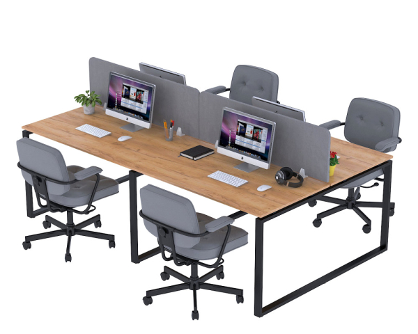 Стіл ND4-240x140 від Loft Design – стильне і функціональне рішення, розраховане на чотирьох осіб, яке об'єднує співробітників в єдиному великому робочому просторі і створює атмосферу відкритості та співпраці. Замість чотирьох окремих столів ви отримуєте гармонійну і компактну конструкцію, що дозволяє максимально раціонально використовувати офісний простір і заощадити бюджет, не жертвуючи комфортом і естетикою. Стіл стане справжнім центром вашого офісу: значний за розміром і сучасний за дизайном, він підкреслює статус компанії і надихає на продуктивну роботу в команді. Надійна розбірна конструкція виконана з металевого каркаса з трубами перетином 50×25 мм, який забезпечує стійкість і міцність навіть при інтенсивній щоденній експлуатації. Чотири просторі стільниці розміром 120×70 см кожна виготовлені з преміального ДСП з 2 мм ПВХ-краєм, таке виконання не тільки надає столу естетичну завершеність, але і захищає його від відколів і механічних пошкоджень. Посилені поздовжні балки надають додаткову жорсткість і довговічність конструкції, а потужні гвинтові з'єднання забезпечують просте складання і надійну фіксацію. Всі необхідні елементи кріплення входять в комплект, що робить складання швидким і зручним.