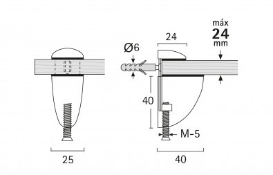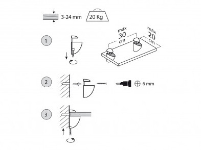 регульований поликотримач дає можливість встановлення скляної полиці завтовшки від 3 до 24 мм |