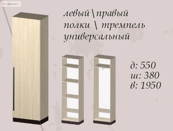Шкаф 550: выс. 195 см, шир. 55 см, гл. 38 см