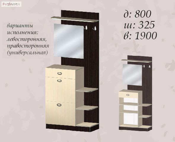 модификация: Прихожая модульная. Может быть разукомплектована или дополнена другими элементами.
