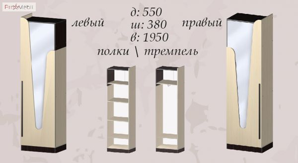 Шкаф 550 с зеркалом: выс. 195 см, шир. 38 см