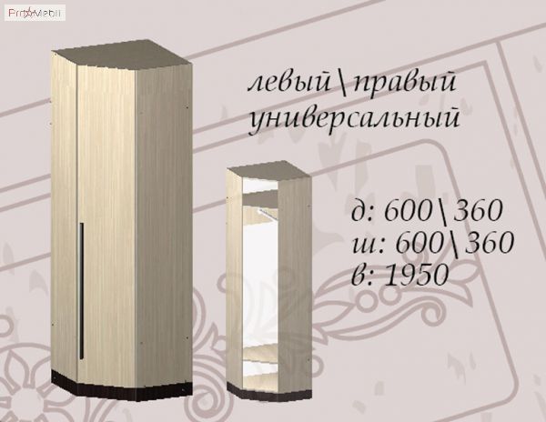 Шкаф угловой: выс. 195 см, шир. 60 см, гл. 60 см